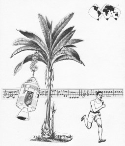 Simple, black and white collage combines a variety of disparate elements to create a surreal scenario